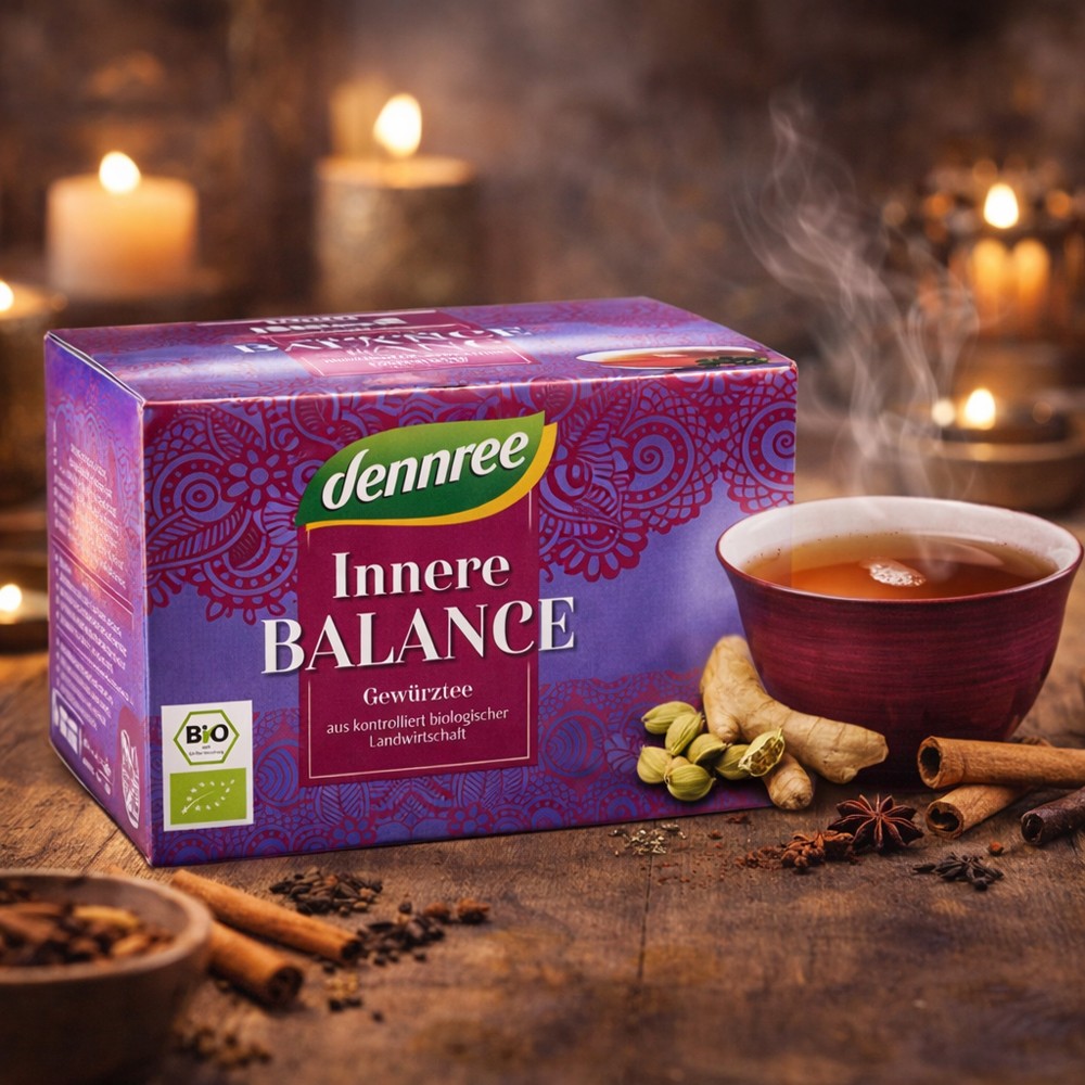 Ceaiul de condimente organice pentru echilibru interior oferă plăcere pură. Cu mirodenii minunate, precum scorțișoară, ghimbir, cardamom, cuișoare și ardei seduce amestecul de ceai dennree în plus față de gustul și simțul mirosului într-un mod atrăgător. Bucurați-vă de gustul aromatic.