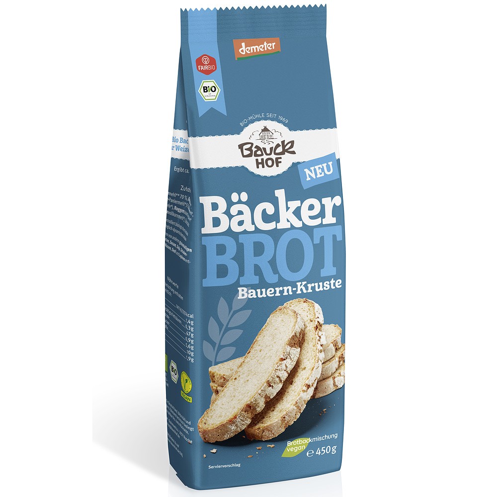 Pentru pasionații de panificație tradițională, mixul bio pentru pâinea brutarului cu crustă, Demeter de la BauckHof oferă un amestec echilibrat de făinuri ecologice, atent selecționate și certificate Demeter, ce asigură o pâine cu o crustă crocantă și o textură moale, aerată. Acest mix respectă metodele artizanale, aducând gustul autentic al pâinii preparate cu grijă.