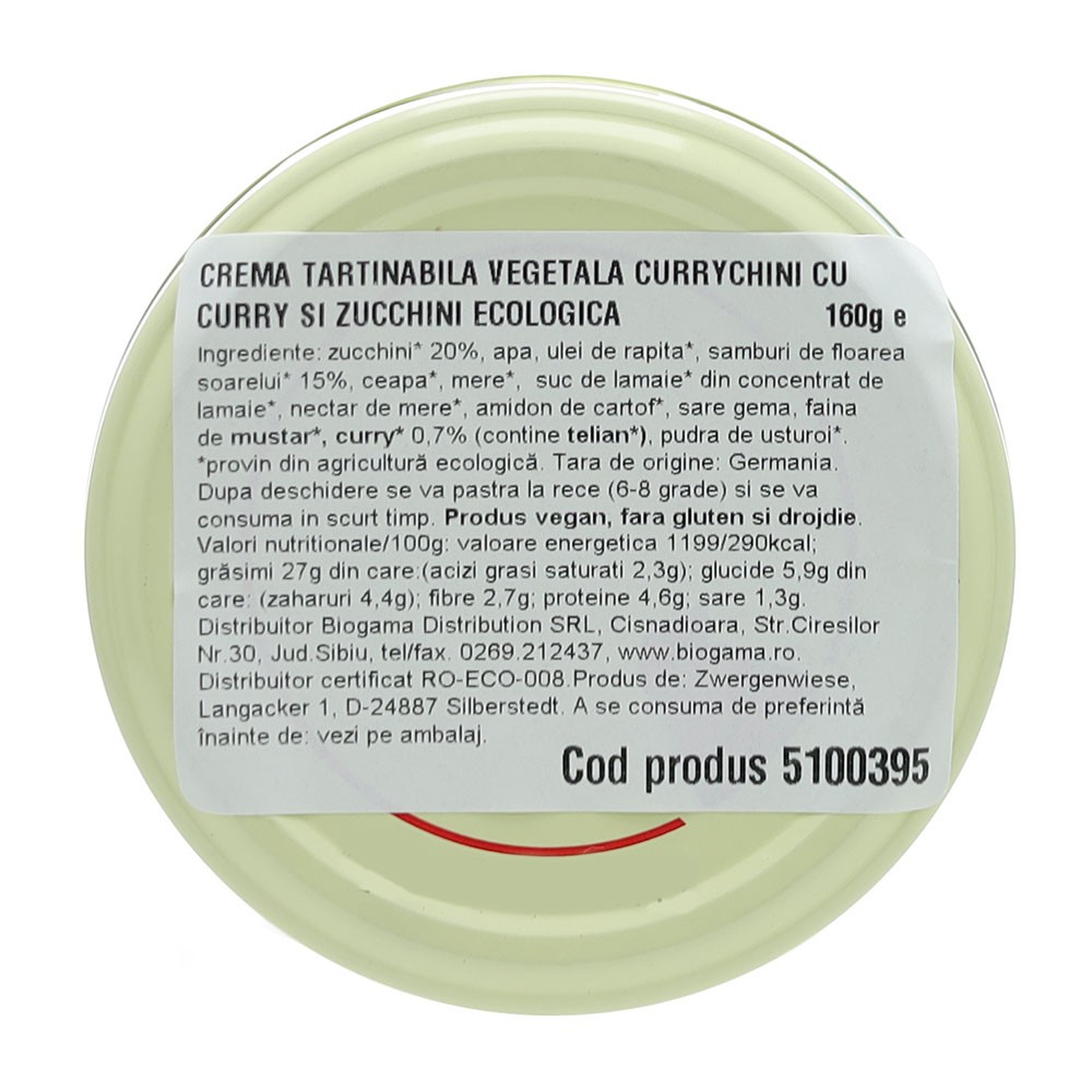 Zwergenwiese Currychini este o cremă tartinabilă care îmbină perfect condimentele orientale cu prospețimea legumelor bio, într-un produs delicios și echilibrat.