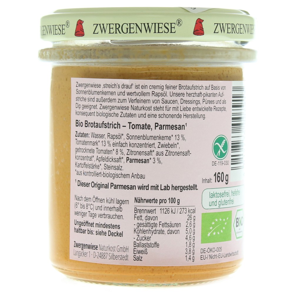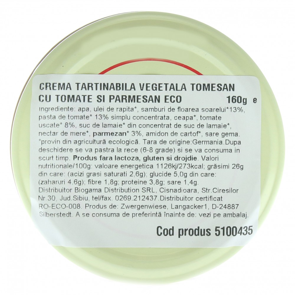 Cremă tartinabilă vegetală bio Tomesan cu tomate și parmezan, Zwergenwiese îți aduce gustul autentic al Italiei într-o formulă 100% vegetală și fără gluten. Această cremă combină roșiile coapte ecologic cu un parmezan vegetal savuros, oferind o aromă intensă și o textură fină, ideală pentru orice moment al zilei.