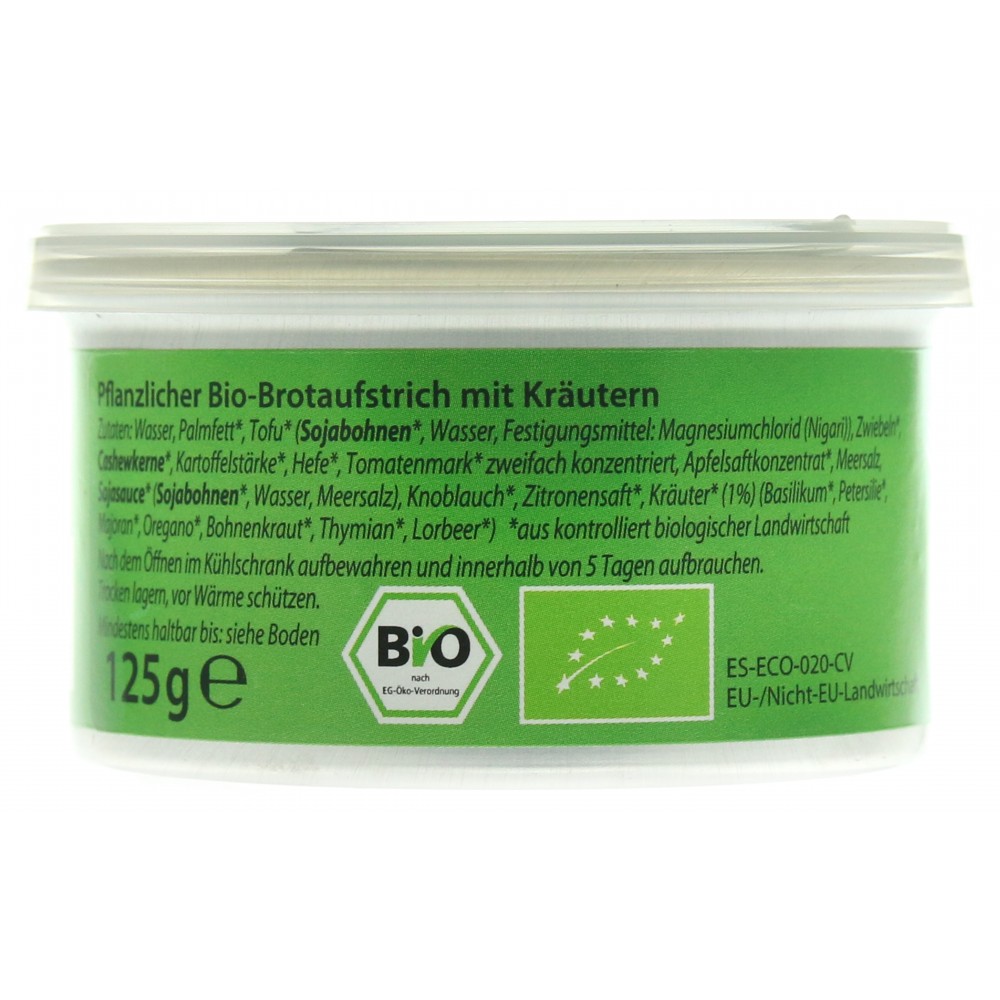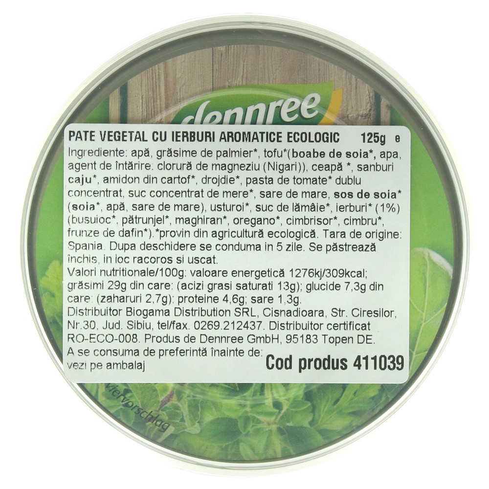 Pateu vegetal cu ieburi aromatice bio, cu ierburi precum busuioc, pătrunjel, maghiran, oregano, sărat, cimbru și frunze de dafin. Doar lucrul pentru o gustare consistentă.