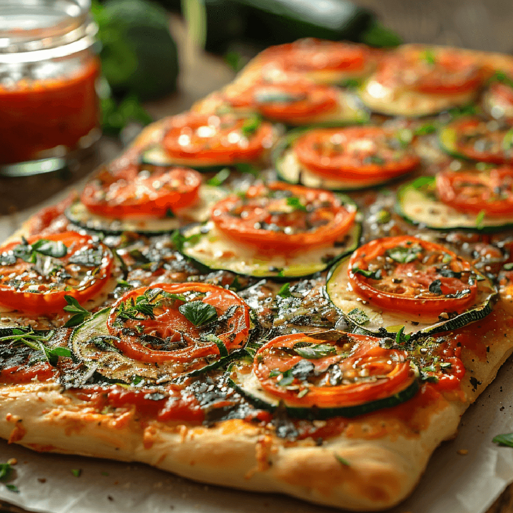 Se unge cu sos de roșii și, în funcție de preferințe, se adaugă topping-ul : zucchini, brocoli, mazăre, praz și avocado. Se rafinează cu sare, piper, chili și cu ierburi aromatice italiene. Introduceți pizza în cuptor și se coace timp de circa 20 de minute.